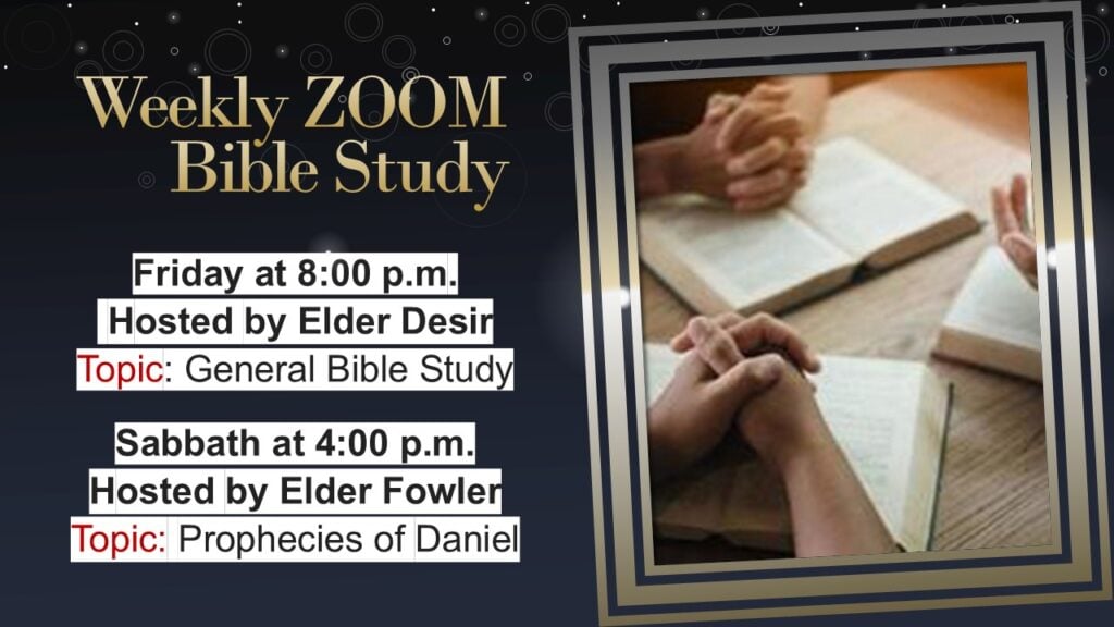 Sabbath – Meeting ID 965 2867 8973 Passcode 149543